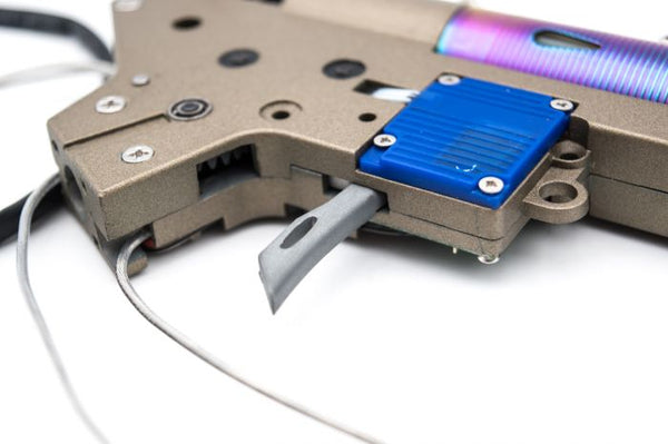 • The chipset that used in Second-To-None Gear Box has a unique function that stop the gearbox from further damage if electric current is too high. Simply to say, electric current / Ampere will increase if there is a malfunction inside the gearbox. For instant, bad motor, damaged gears or short circuit. When our S.D.U. detected more than 5 trigger presses in exceed Amps, the whole gearbox will shut down to prevent further damage. User has to disconnect and then reconnect the power supply to reboot the gearbox, we strongly recommended user to check the internal immediately if mal-function happened.